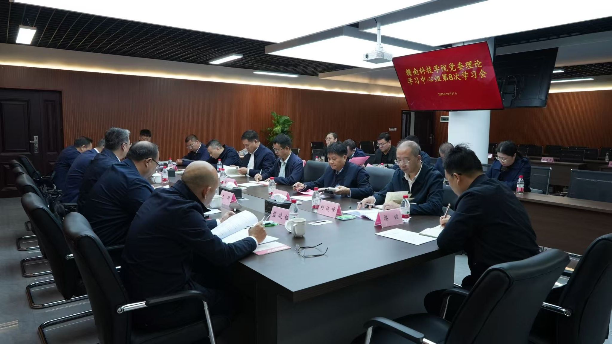 本网讯:10月21日,学校召开党委理论学习中心组第8次集体学习会,深入学习贯彻习近平经济思想和《习近平谈治国理政》第五卷,重点学习领会习近平总书记关于新质生产力的重要论述。学校党委书记邱建军主持并讲话。党委副书记、校长邱建丁,党委委员、副校长左群作交流发言。党委委员、纪委书记陈文新,党委委员、亚洲AV午夜成人片精品网站部部长蓝晓植出席会议。