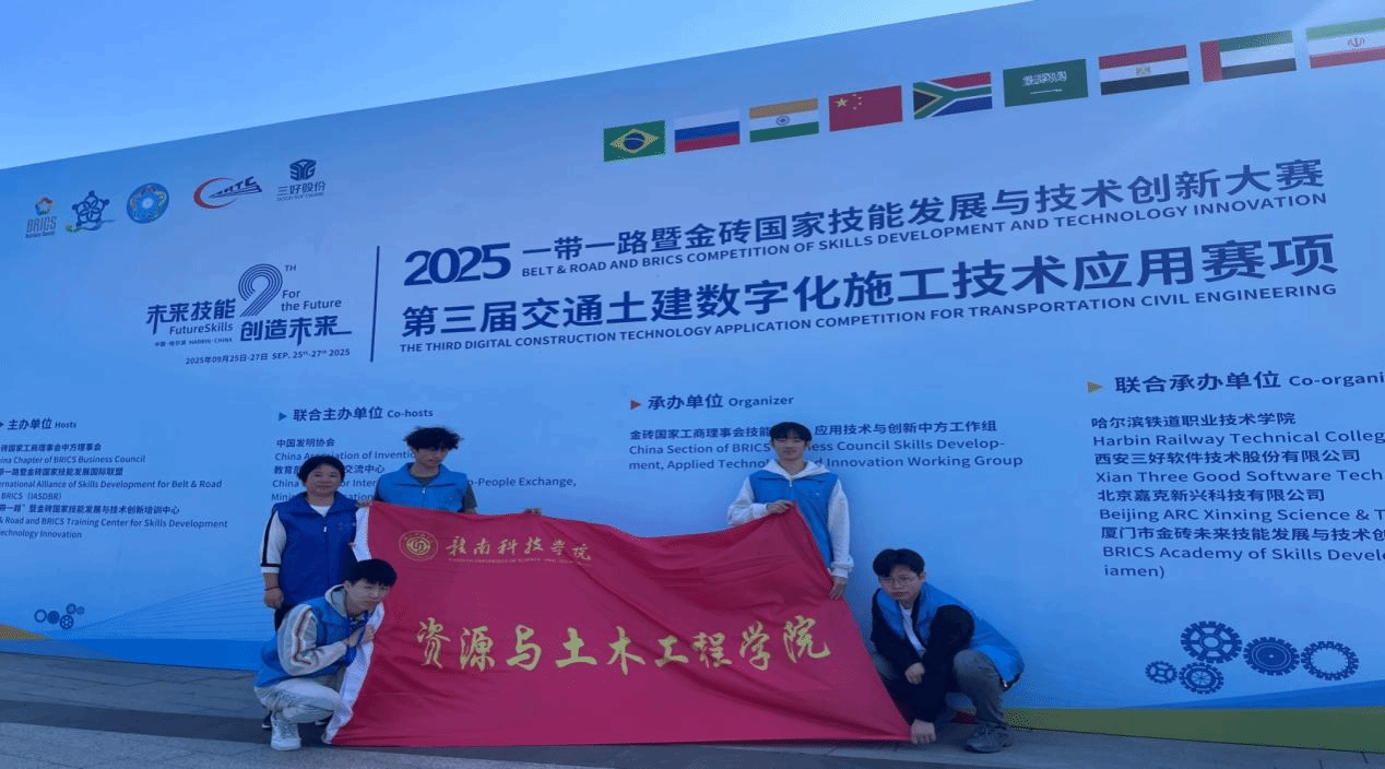 本网讯:近日,2025“一带一路”暨金砖国家技能发展与技术创新大赛第三届交通土建数字化施工技术应用赛项全国总决赛以及装配式建筑智能建造技术应用赛项全国总决赛先后在哈尔滨、武汉举办。我校资源与土木工程学院学子在赛事中表现突出,捷报频传,展现了扎实的专业素养与技术应用能力。