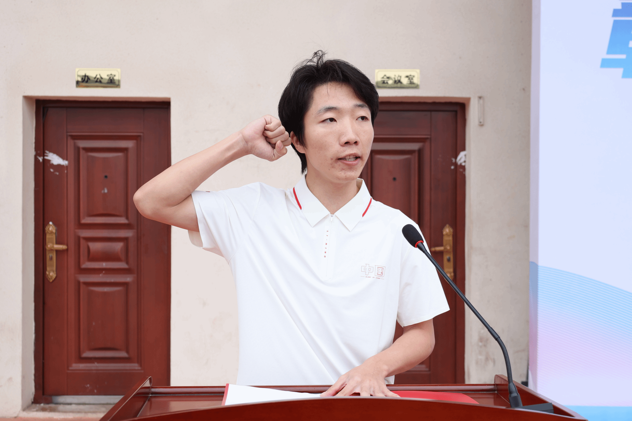 裁判员代表社体231班张浩宇同学和运动员代表网络空间安全251班袁雨丰同学在赛前宣誓。