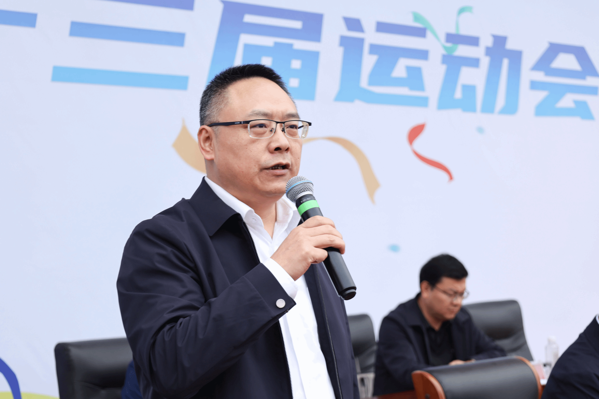 左群在开幕式上致辞。他代表学校对运动会的举行表示热烈的祝贺,向辛勤筹备运动会的师生表示感谢,对刻苦训练的运动员致以亲切的问候。左群指出,体育是国家、民族和教育事业的重要组成部分,是落实“五育并举”、培养全面发展人才的关键环节。校运会是对学校体育教学成效和师生身体素质、精神风貌的全面检阅,更是展示青春风采、锤炼意志品质、培育团队精神的重要舞台。他强调,近年来学校持续深入实施素质教育。体育馆和大学生活动中心的正式启动为锻炼和活动提供优越条件,举行“阳光乐跑”活动、“活力赣科”系列体育运动和各类球类赛事,激发师生运动热情。学校将继续把体育工作摆在重要位置,让每位师生在体育锻炼中有所收获。左群提出四点希望:一是希望全体运动员发扬 “更快、更高、更强、更团结” 的奥林匹克精神,严格遵守竞赛规则,尊重对手、尊重裁判,赛出风格、赛出水平;二是希望全体裁判员与工作人员恪尽职守、认真履职,严格执行赛风赛纪,秉持公平、公正、公开原则,全力保障赛事规范有序进行;三是希望全体观赛同学自觉遵守赛场秩序,文明观赛、热情助威,共同营造积极向上的赛事氛围;四是希望全体师生以本次运动会为契机,将赛场上的拼搏精神、协作意识转化为学习与工作的持续动力,积极投身个人成长与学校高质量发展的新征程。