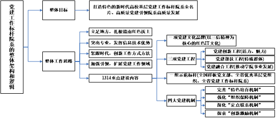 学院党委高度重视党建工作,通过深入开展调研,群策群力,整体谋划,确定了党建工作建设的整体架构和逻辑。整体目标是:打造特色的新时代高校基层党建工作标杆院系“金名片”,通过高质量党建引领学院高质量发展。整体工作思路是:立足地方,扎根赣南红色沃土;突出专业,发挥信息技术优势;紧跟时代,创新工作方式方法;加强引领,扩展党建工作领域。通过重点实施“1314”工程,明确工作任务。打造一项党建文化品牌,充分发挥“红色IT文化”的育人功效。实施三项党建工程:党建创新工程,激发党支部的活力和魅力;党建帮扶工程,重点关注特殊群体学生;党建融合工程,通过“党建+教学、科研、人才培养”等推动学院事业发展。打造一组示范标杆,在目前已获评全国党建工作样板支部、江西省教育系统先进基层党组织和党建工作标杆院系的基础上,争取更进一步,积极申报全国党建工作标杆院系。完善四大党建机制:特色培育机制、组织保障机制、定点联系机制、创新激励机制。学院党委紧盯目标任务,将任务分解,采取责任到人的方式,定期进行专项督导和检查,确保建设质量和进展。