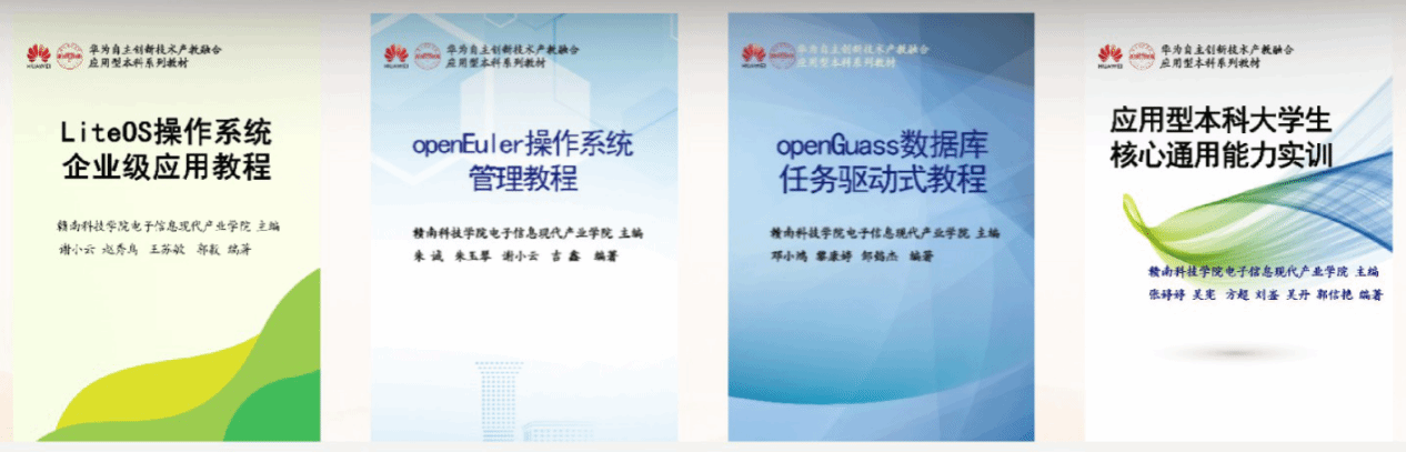 在教研方面,学院立项大学生创新创业训练计划项目19项,其中国家级2项,省级13项。电子信息现代产业学院与华为技术有限公司实现了产教深度融合,双方紧密结合产业需求,联合编写了“华为根技术产教融合应用型本科系列教材”。该系列教材系统化地介绍华为根技术及其应用案例,涵盖物联网、鲲鹏、鸿蒙、openGauss等关键技术领域,为应用型高校的人才培养及华为生态链企业的技术发展,提供了很好的技术支撑。《openGauss数据库任务驱动式教程》入选首批江西省“十四五”普通高等教育本科省级规划教材立项建设名单。