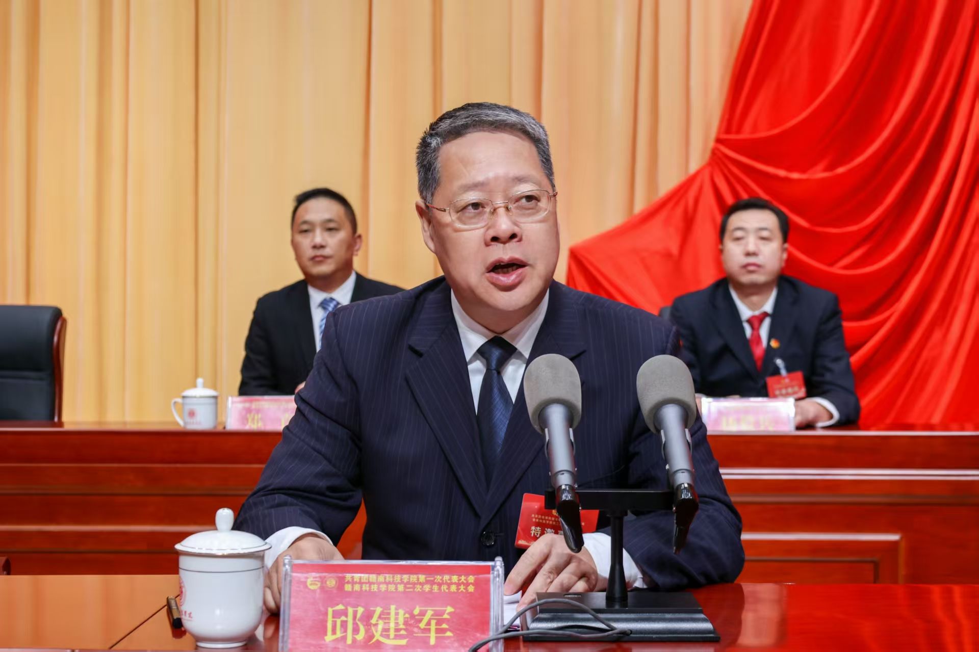 学校党委书记邱建军代表学校党委向大会召开表示祝贺。他指出,学校转设以来,团学组织在学校党委的领导下,围绕中心、服务大局,在服务学校发展和青年成长方面取得显著成效。围绕学校“三步走”战略目标,他对全校团员青年和团学组织提出了殷切期望,勉励广大青年要坚定理想信念、练就过硬本领、勇于担当作为、锤炼品德修为,在建设全国知名、省内一流、特色鲜明的高水平应用型大学的征程中贡献青春智慧和磅礴力量。