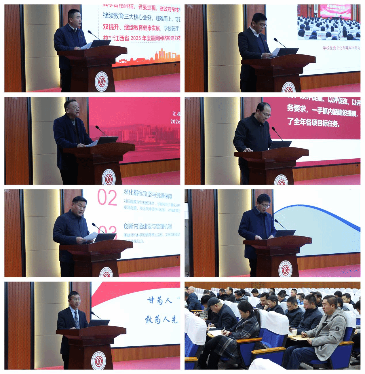 会前,各二级单位负责人依次就本单位2025年工作成绩、重点任务完成情况、特色创新举措及廉政建设等内容做述职汇报,全面复盘工作亮点与不足。教职工代表结合述职情况,对各单位工作及中层干部履职表现进行民主测评,以评促改、以评促干,凝聚干事创业共识。