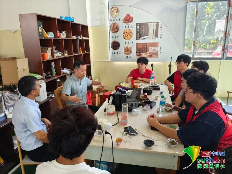 图为珠坑乡党委委员兼组织委员许天明为师生团队讲解果珠香润食品有限公司的企业情况。陈鑫 供图