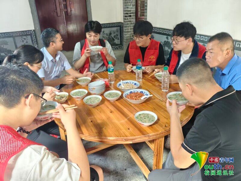 图为志愿者与当地居民一同体验当地独特的擂米茶习俗。 陈鑫 供图