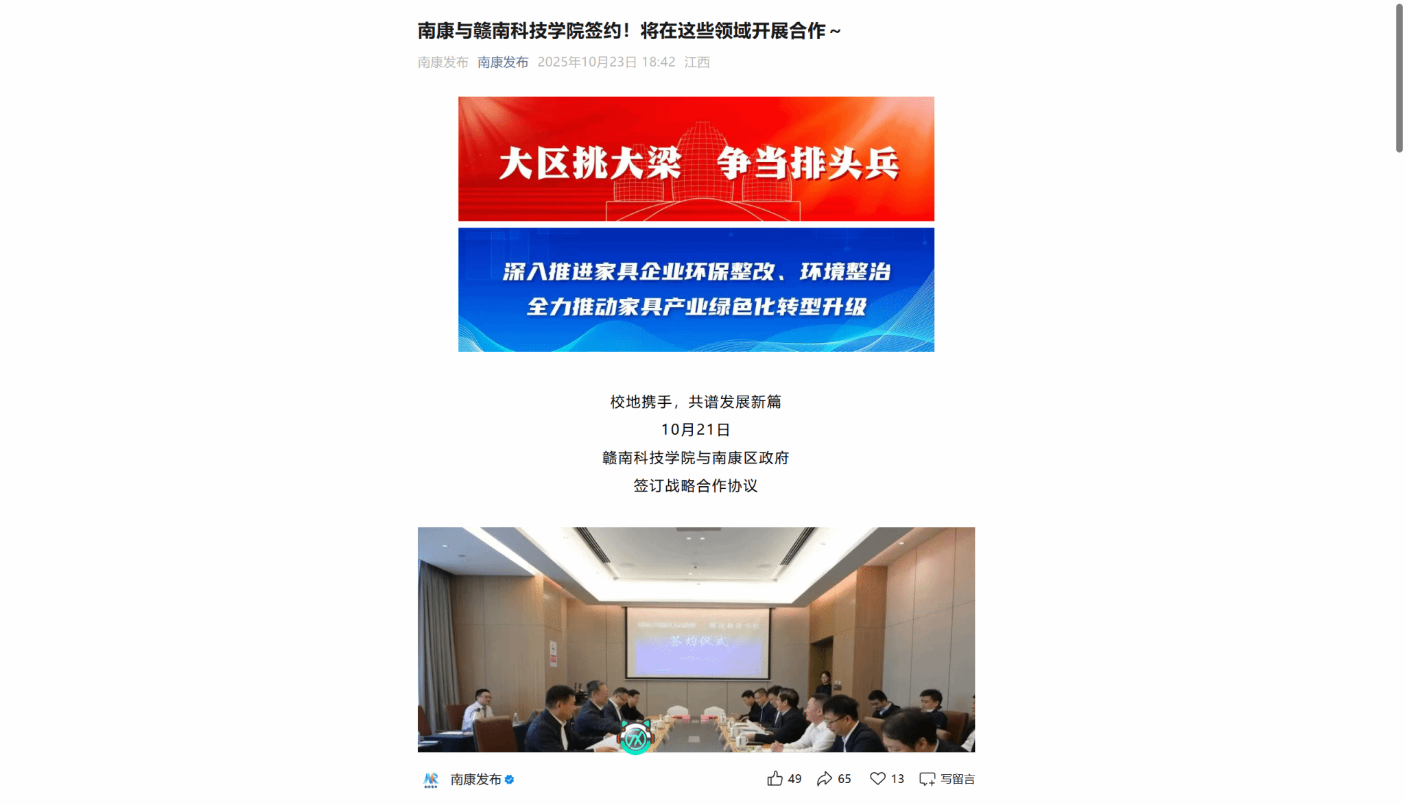 校地携手,共谱发展新篇,10月21日,亚洲欧美日韩中文字幕在线与南康区政府签订战略合作协议
