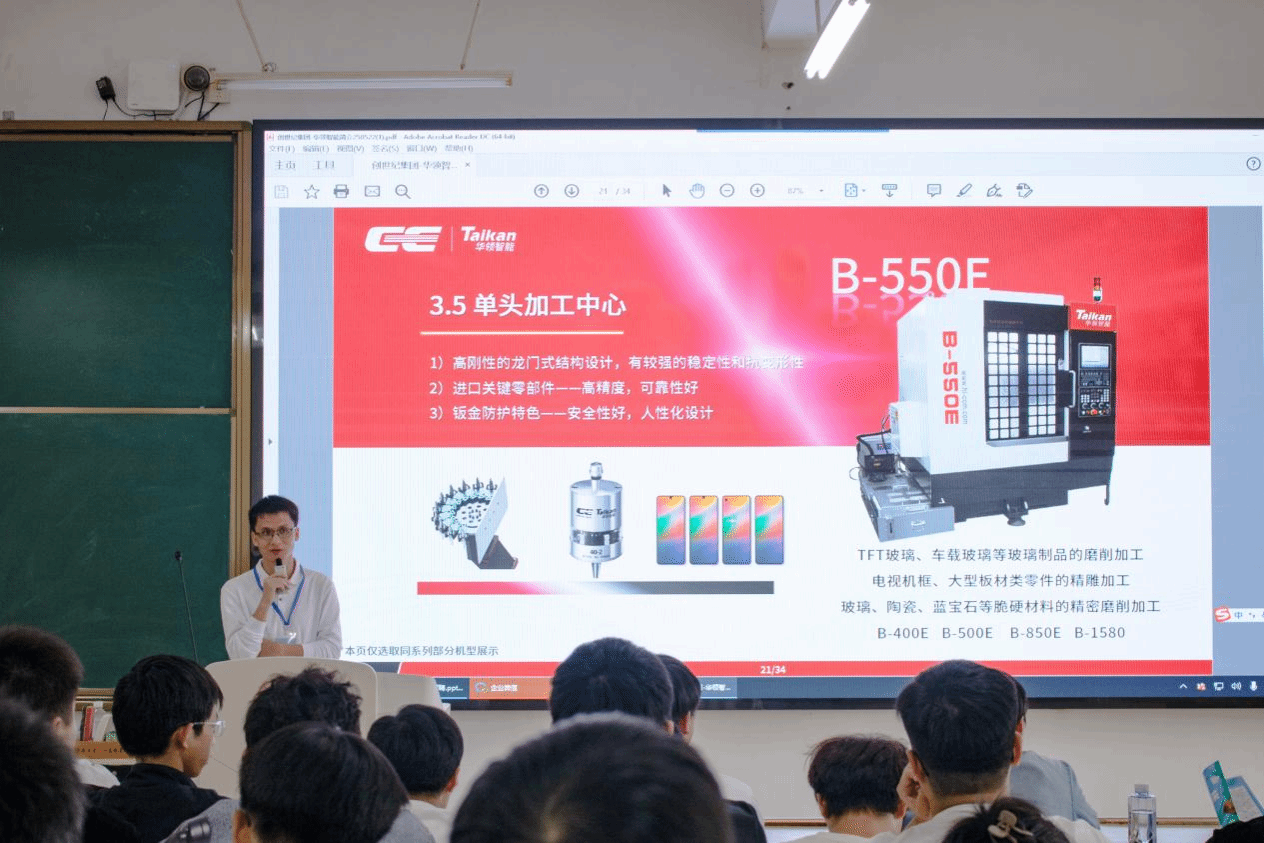 宣讲会上,来自智能制造、装备研发、新材料等领域的多家知名企业依次进行展示,向同学们介绍了企业发展状况、岗位需求、人才培养体系以及未来职业发展路径。深圳市华领智能装备有限公司、广东德晟智能科技有限公司等企业开展了现场宣讲,并与同学们进行了面对面交流,现场氛围热烈。