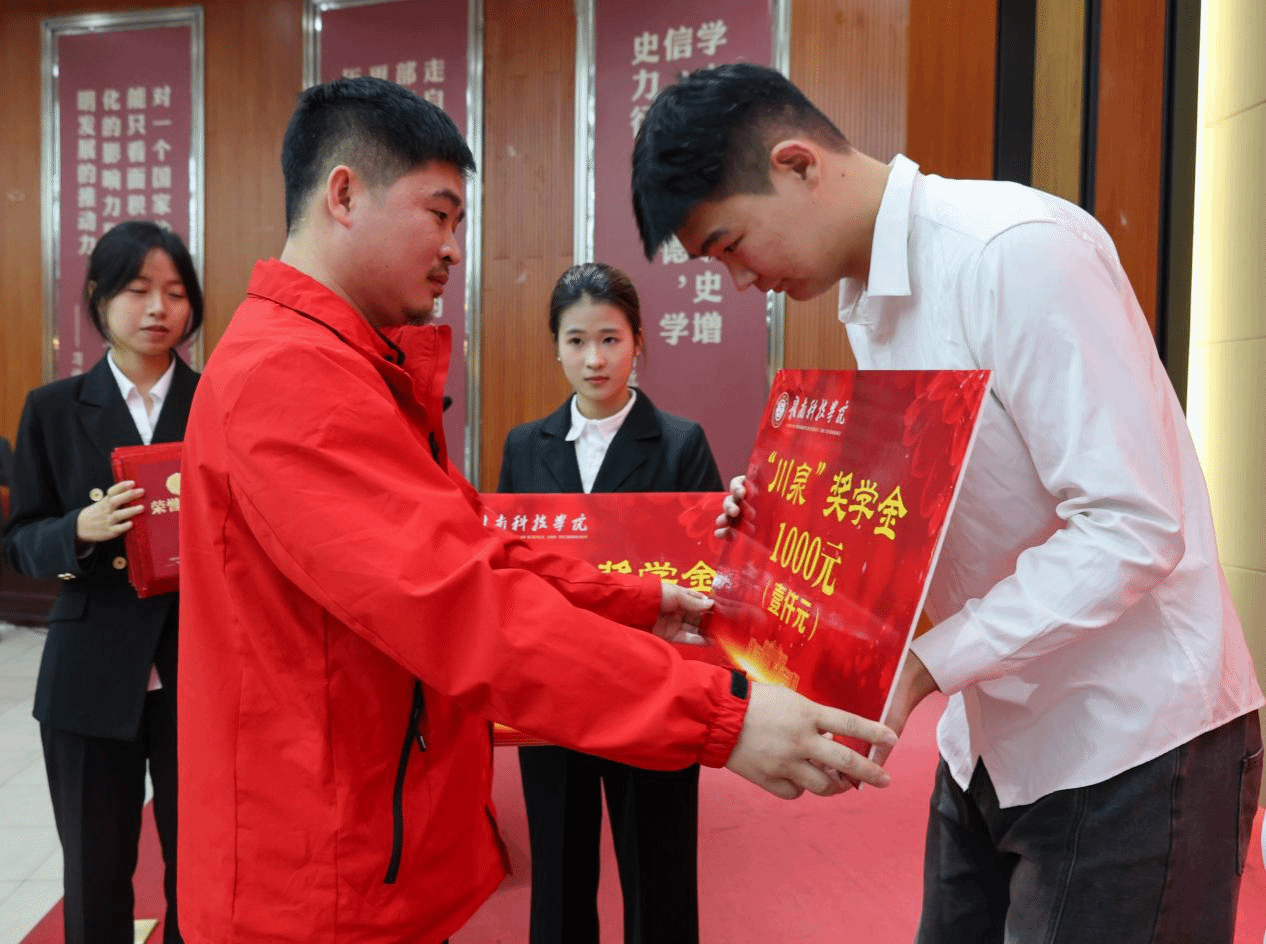 本网讯:12月9日,我校在图书馆学术报告厅举办2025年第二届“川泉”奖学金暨第五届“爱云”奖学金总结表彰大会。学校党委委员、副校长左群,昆山川泉智能装备有限公司董事长曾庆鸿出席活动,智能制造与材料工程学院党委委员、副院长刘辉,智能制造与材料工程学院党委委员关开荣、肖志华及全体辅导员、班主任代表和学生代表参加此次表彰大会。