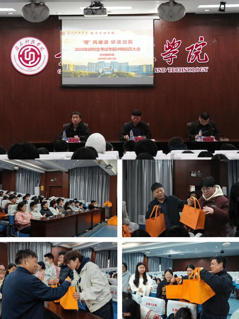 肖永鸿在总结中向全体考研学子提出五点殷切期望:一是胸怀“国之大者”,将个人理想融入时代发展;二是坚定战略自信,珍惜积累、从容查漏补缺;三是用好组织优势,遇到困难及时向学院求助;四是严守纪律底线,诚信应考;五是保持战斗状态,科学规划冲刺、调整好身心状态。肖永鸿强调,学院将全力提供支持,让学子们心无旁骛奔赴考场。大会现场还举行了温馨的“考研加油包”赠送仪式。领导老师们亲手将装满脐橙、涂卡套装、文具等物资的加油包送到学子手中,寓意着“旗开得胜、心想事‘橙’”,把学院的深切关怀与美好祝福传递给每一位备考学子,现场暖意融融。