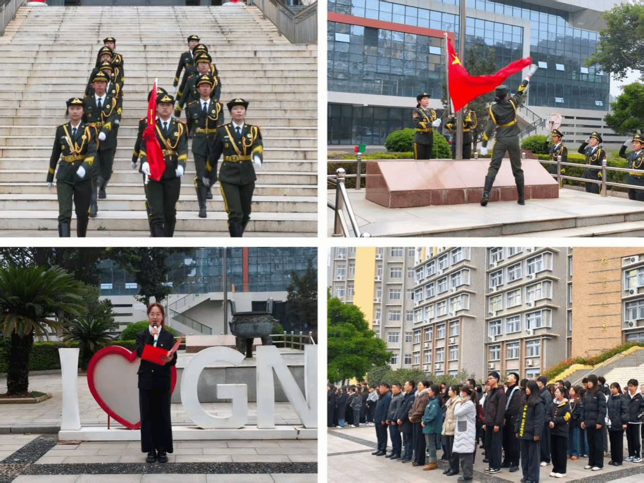 仪式在庄严肃穆的氛围中开始。国旗护卫队迈着铿锵有力的步伐护送国旗入场,伴随着雄壮的国歌声,五星红旗冉冉升起,全体师生肃立行注目礼。学生代表金融241班谭心怡作国旗下发言,她号召同学们在党的二十届四中全会精神的指引下凝心聚力、在学校第一次党代会的号召中锐意创新,学好专业知识,勇于实践,努力成为能在金融一线服务实体经济、在文化舞台传播中国故事的新时代人才。