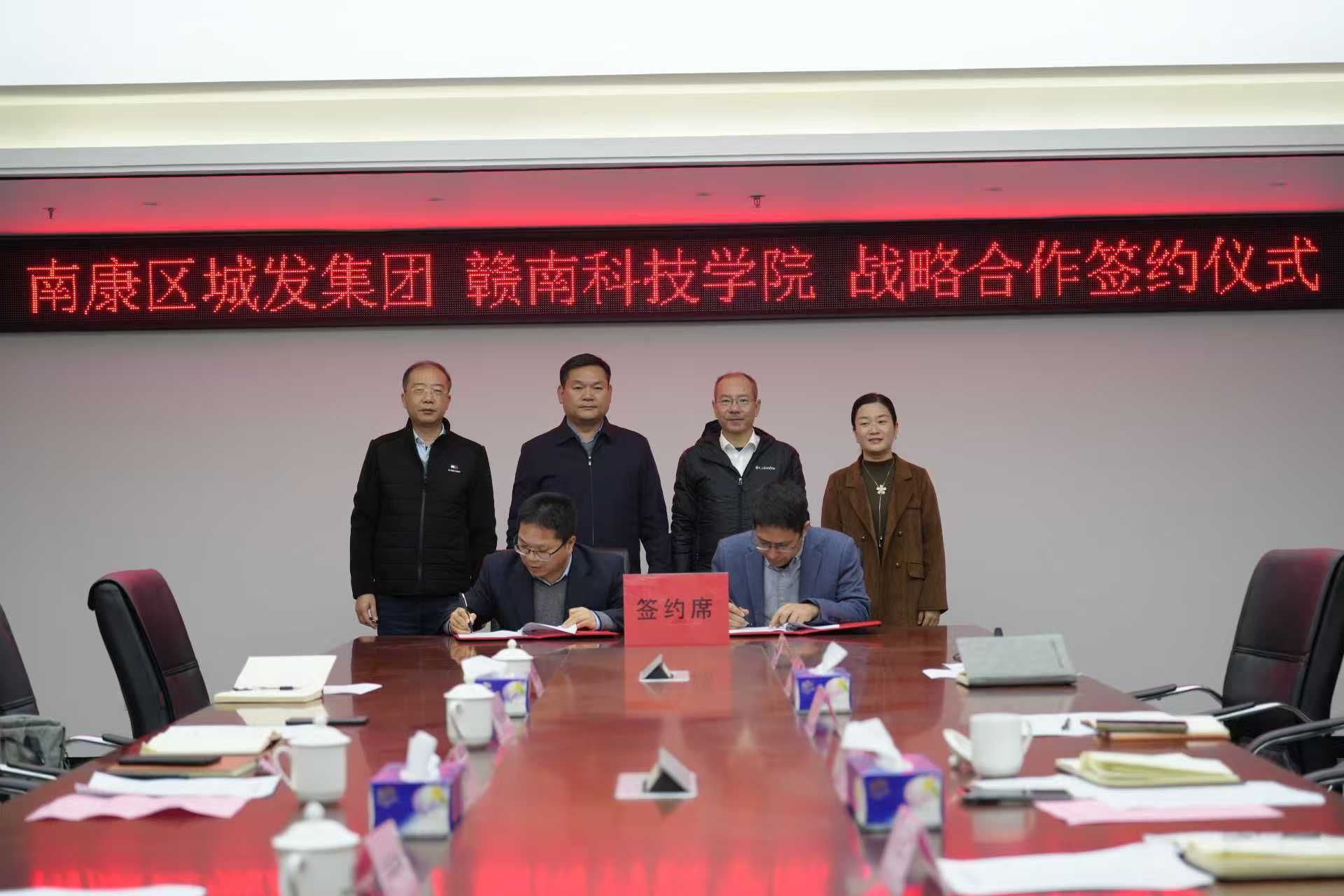本网讯:12月30日,我校与南康区城发集团战略合作签约暨实习实践基地揭牌活动在南康区金融中心2号楼9楼会议室顺利举行。南康区城发集团党委书记、董事长刘康明,我校科技处处长张耀平出席活动并致辞;南康区城发集团风控总监曾春艳,我校资源与土木工程学院党委书记刘俊峰、副院长卢志刚等参加仪式。