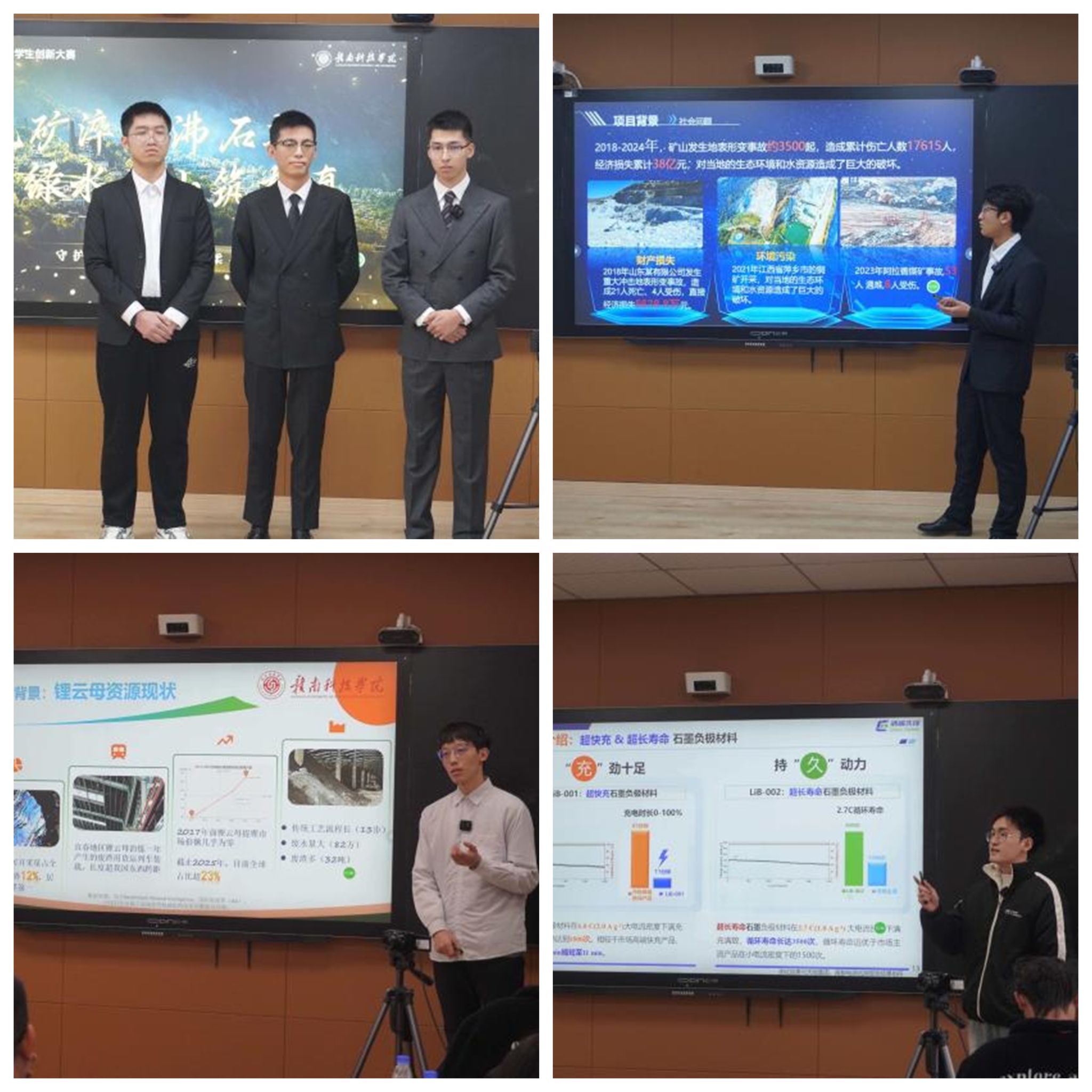 评审专家对本次大赛的组织筹备工作给予充分肯定,高度评价了参赛项目的专业性、创新性和实践性,认为参赛作品紧扣时代需求,兼具理论深度与应用价值。同时,专家们也针对项目核心技术优化、市场应用拓展、逻辑架构完善等方面提出了建设性意见,鼓励各团队持续打磨项目,推动成果落地转化。经过激烈角逐,“岩阵以待,智防未然——金属矿山地下深部开采安全护航者”“清碳先锋:基于CCUS技术的超快充长寿命石墨负极引领者”“《铸梦同行》——构建AI Native人生的终身成长系统”“尾矿’沸’凡——稀土尾矿基沸石吸附与高效净化一体化系统”“红土希望——赣南离子型稀土绿色开采先行者”“地脉问诊·磁声断险——智慧融合电磁超声地质灾害超前探测领航者”等项目入围获奖。
