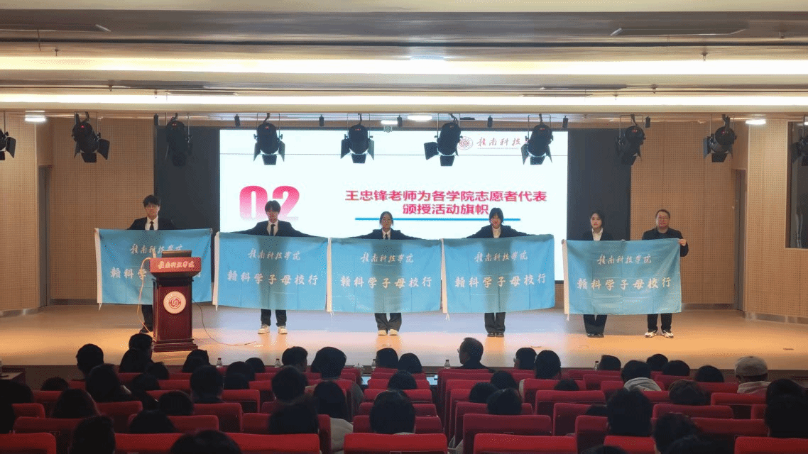 启动仪式上,来自电商 241 班的管湘、金融 241 班的李开煦代表往届志愿者代表分享了精准沟通、聚焦核心话题、打造立体宣讲及长效服务的实践技巧,王忠锋为各学院志愿者代表授旗,招生科科长王云丰对宣讲内容进行了解读。