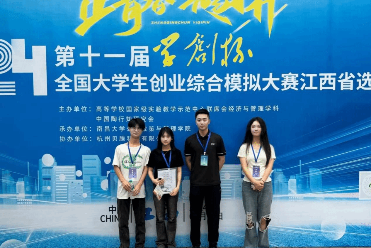 “想知道自己在不擅长的领域,能取得什么样的成绩。”正是这份对自我的挑战欲,让叶剑平在班主任的推荐下,迈出了跨界参赛的第一步——第十一届“学创杯”全国大学生创业综合模拟大赛江西省选拔赛。对于环境设计专业的他来说,这场比赛无疑是一场“硬战”:函数公式、软件操作、经济理论等知识都是一场零的开始,起初他感到无从下手,但怀揣着那份不服输、只向前的信念,在为期三个月的培训里,他与时间赛跑,利用团队合作、分工克难、虚心请教相关教培人员的方法,最终取得优异成绩。作为跨专业型选手,这次“学创杯”大赛给他留下了深刻的印象,备赛期间争分夺秒的紧张、路遇挫折的迷茫、斩获奖项的兴奋都历历在目。