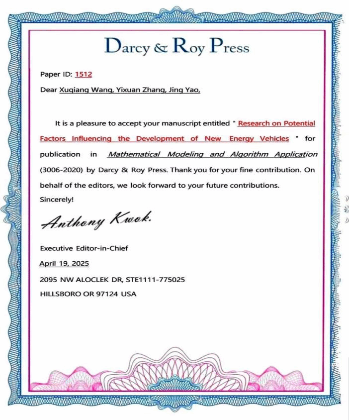 姚晶的探索远不止于赛场和竞赛。她与张懿璇学姐合作,将目光投向学术领域,共同撰写并发表了关于“影响新能源汽车发展潜在因素研究”的国际论文。确定这一选题源于她对现实问题的关注,而挑战则在于专业知识的匮乏。解决问题的办法朴实而有效:泡在图书馆查阅资料,虚心向学姐请教,一点点“啃”下陌生的知识。这一学术成果,标志着她成功实现了从“体育技能”到“综合素养”的跨越。