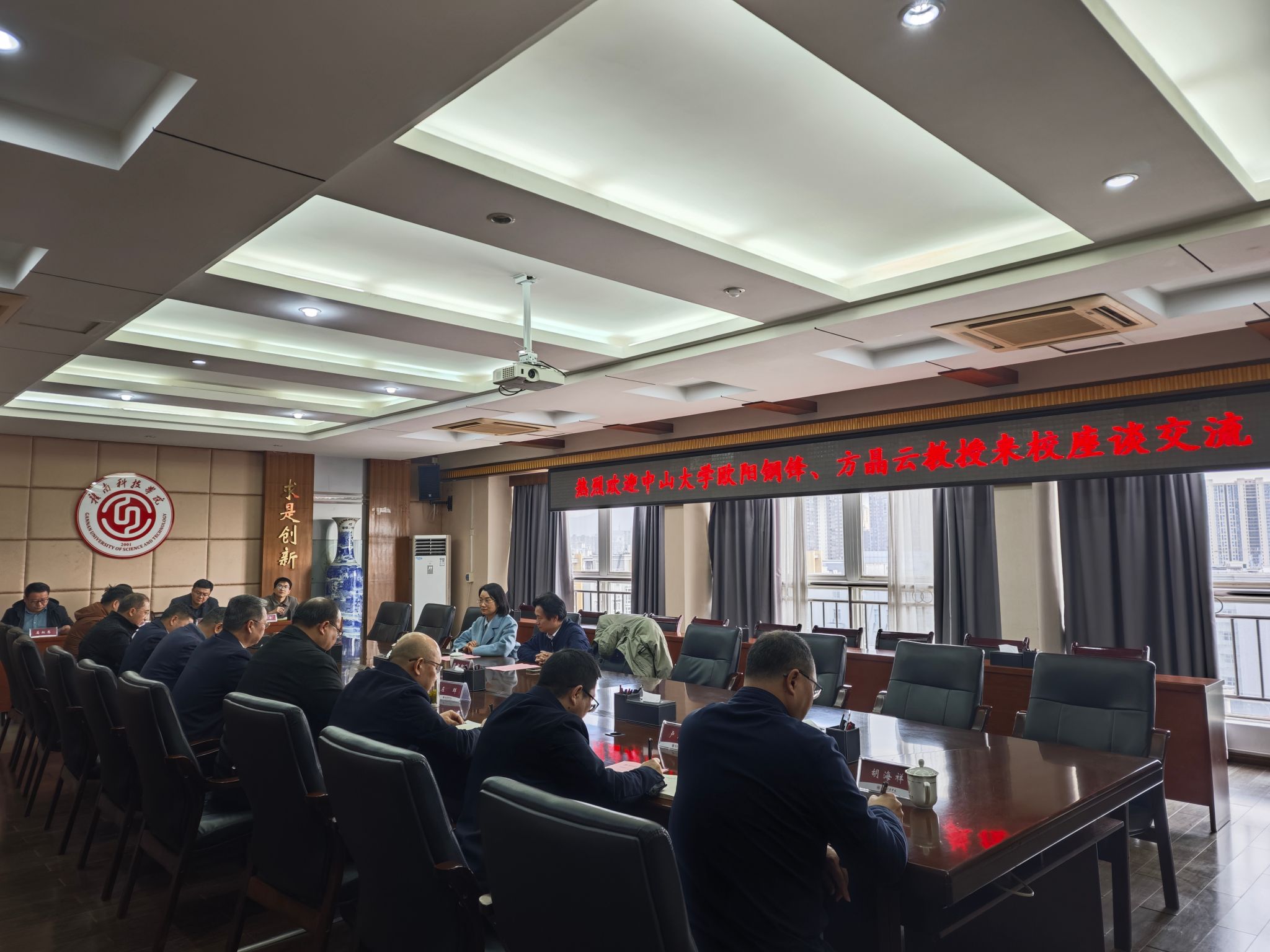邱建军代表学校对欧阳钢锋、方晶云两位教授表示热烈欢迎。邱建军指出,稀土开采、加工过程中面临的水污染防治问题,既是生态环境保护的关键课题,也是推动稀土产业高质量发展的重要瓶颈。邱建军诚挚邀请两位教授团队与学校深度携手,围绕稀土资源高效利用、清洁生产技术研发、生态环境治理等重点方向,探索多元化合作模式,搭建产学研协同创新平台,共同攻克技术难题,推动科研成果就地转化,助力赣南稀土产业绿色可持续发展,实现生态保护与产业升级双赢。
