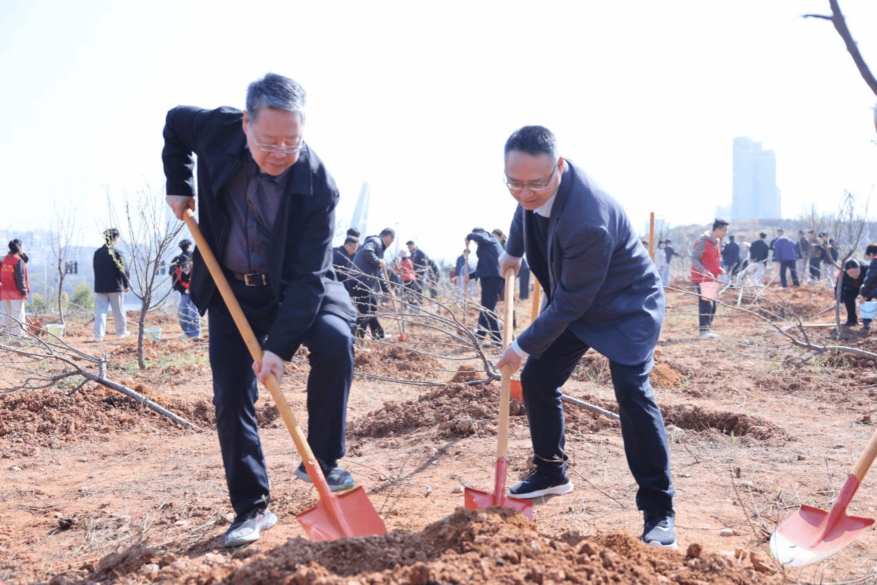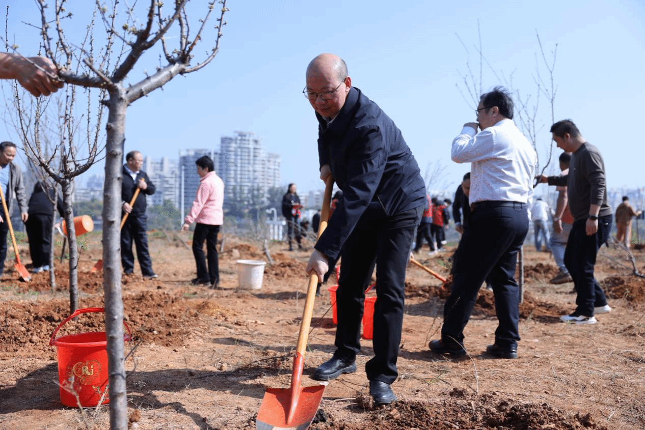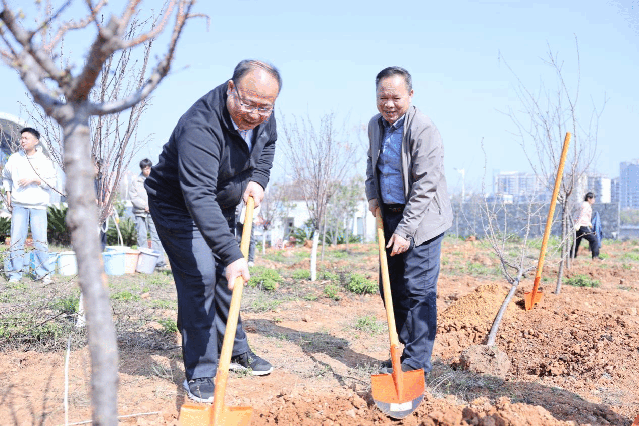 本网讯:春和景明,万象萌新。3月12日,我校在稀土大楼北面空地举行“植此青绿,青春筑梦”植树节主题活动。学校党委书记邱建军,党委副书记、校长邱建丁,党委委员、副校长左群,党委委员、纪委书记陈文新,党委委员、副校长何锦龙,党委委员、亚洲AV午夜成人片精品网站部部长蓝晓植,党委委员、宣传部部长邓亦林等校领导班子成员与师生代表共同参与,以实际行动践行“绿水青山就是金山银山”理念,为校园再添新绿,引导广大师生植绿护绿、关爱自然。