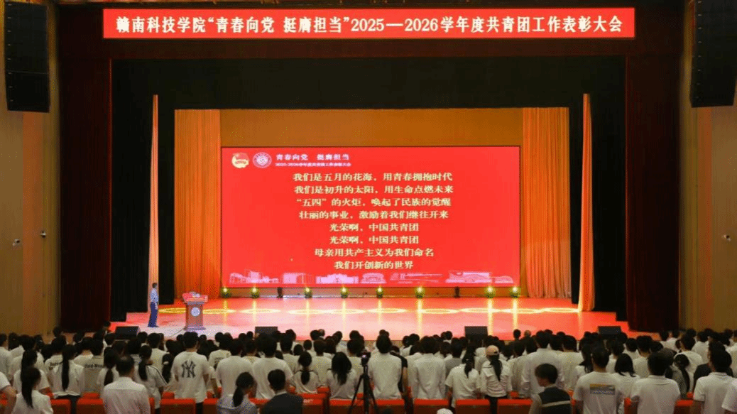 本网讯:为弘扬“五四”精神,传承“五四”薪火,树立典型,表彰先进,4月28日下午,我校在大学生活动中心大礼堂举行“青春向党 挺膺担当”2025-2026学年度共青团工作表彰大会。学校党委书记邱建军,党委委员、副校长左群,党委委员、纪委书记、监察专员陈文新,党委委员、亚洲AV午夜成人片精品网站部部长蓝晓植,党委委员、宣传部部长邓亦林,党政办公室、党委学生工作部、教务处负责人,以及各学院党委负责人、分管学生工作的党委委员,校团委全体干部职工,全体辅导员,获奖集体和个人代表,青年学生代表参加大会。大会由学校党委委员、副校长何锦龙主持。