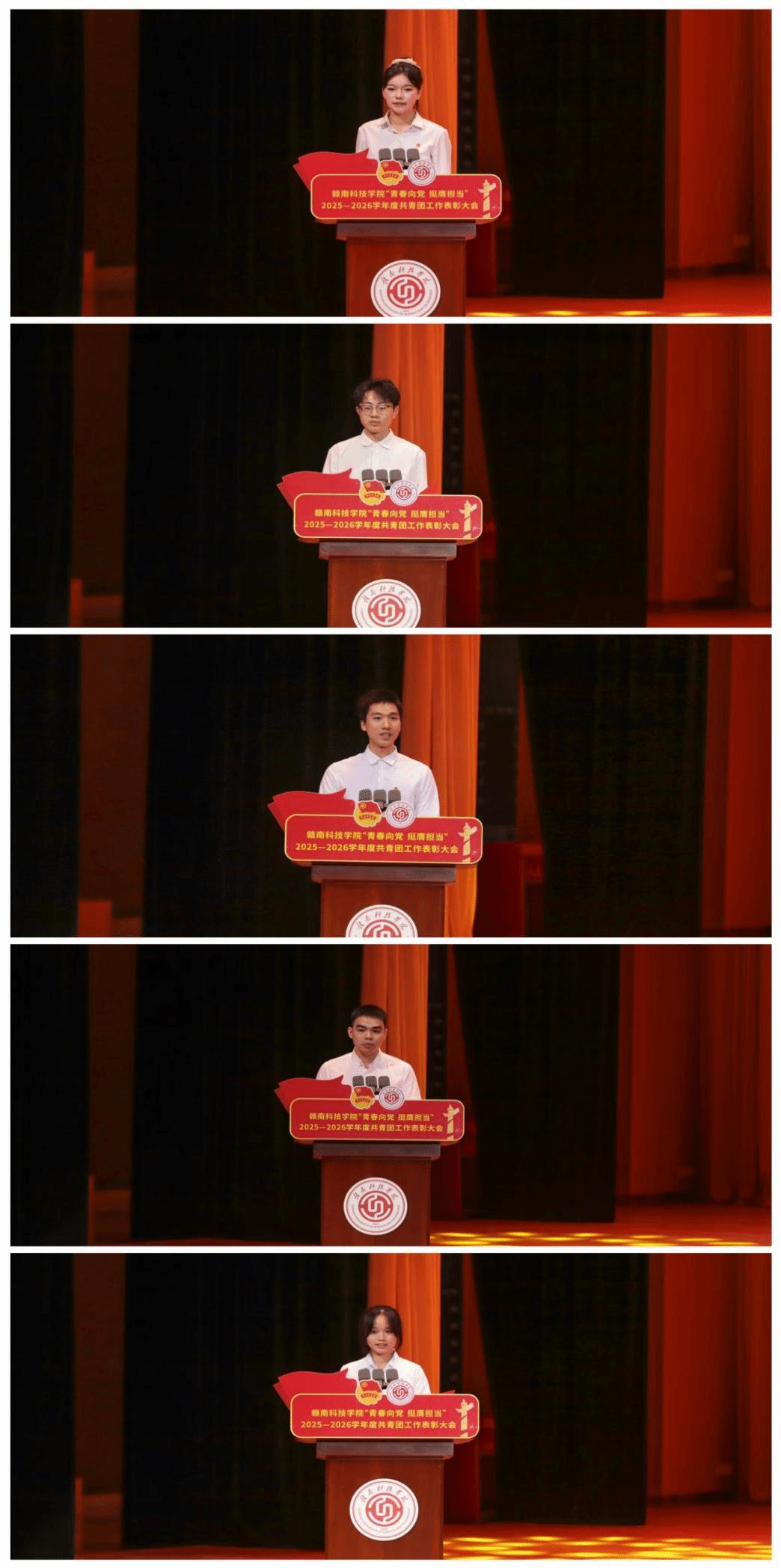 先进个人与先进集体代表依次发言。智能制造与材料工程学院新能源231班团支部陈君萍、信息工程学院物联网232班团支部张帅及文法学院法学232班团支部严泉同学作为先进个人代表,结合自身学习与团务工作经历,分享了成长路径与历练收获。资源与土木工程学院团委刘辉老师及经济管理学院会计234班团支部学生张丽琴作为先进集体代表分享了经验。