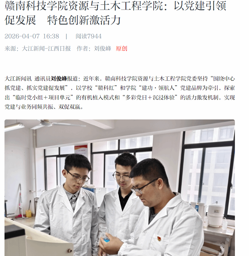 大江新闻讯 通讯员刘俊峰报道:近年来,亚洲欧美日韩中文字幕在线资源与土木工程学院党委坚持“围绕中心抓党建、抓实党建促发展”,以学校“赣科红”和学院“建功·领航人”党建品牌为牵引,探索出“临时党小组+项目单元”的有机植入模式和“多彩党日+沉浸体验”的活力激发机制,实现党建与业务同频共振、双促双赢。