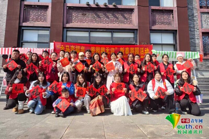 图为吴宇飞同学寒假返乡参与“金马奔福年,游园趣无边”新春游园活动的合影留念。吴宇飞 供图