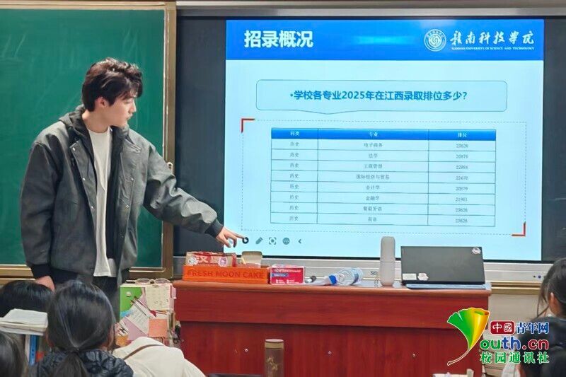 图为杨堃同学寒假返回母校为即将高考的学弟学妹介绍招录概况。杨堃 供图