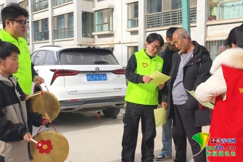 图为孙有善同学寒假返乡后走街串巷进行文明宣传。孙有善 供图