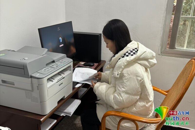 图为黄静怡同学返乡后走进永兴镇人民政府协助开展基层调研。黄静怡 供图