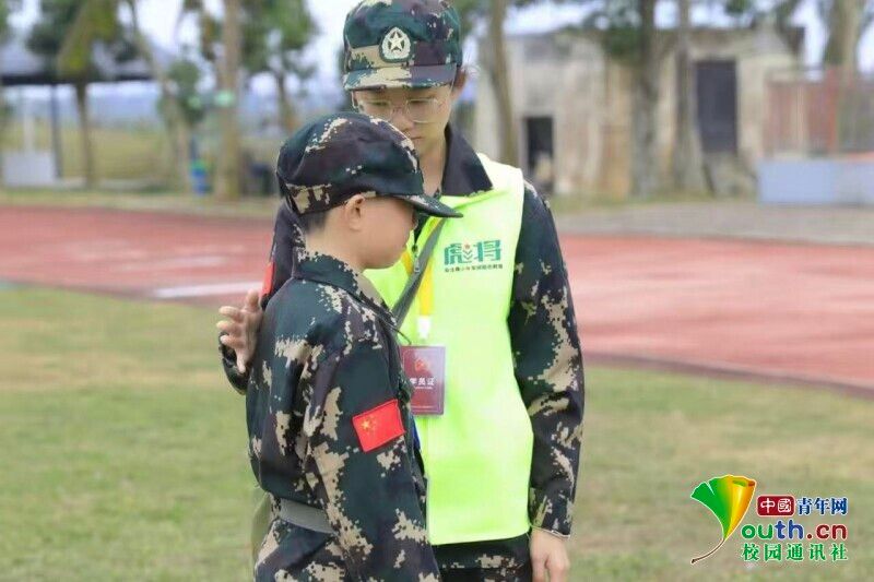 图为宋雯琪同学在海南黄埔彪将冬令营基地当生活老师时纠正孩子站姿。宋雯琪 供图