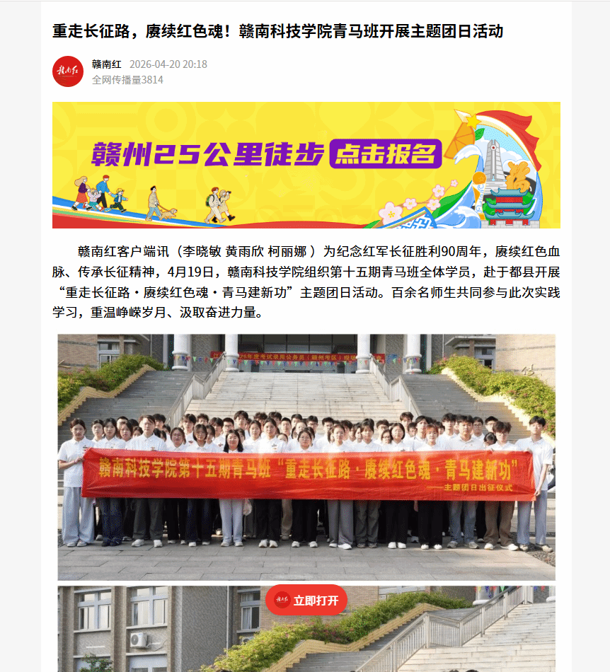 此次于都之行,不是一次简单的徒步旅行,而是一场寻根之旅、补钙之旅、铸魂之旅。同学们在实地行走中感悟革命初心,在亲身体验中厚植家国情怀,进一步坚定理想信念、锤炼意志品格,努力成长为有理想、敢担当、能吃苦、肯奋斗的新时代青年,以实际行动在新征程上接续奋斗、勇毅前行。