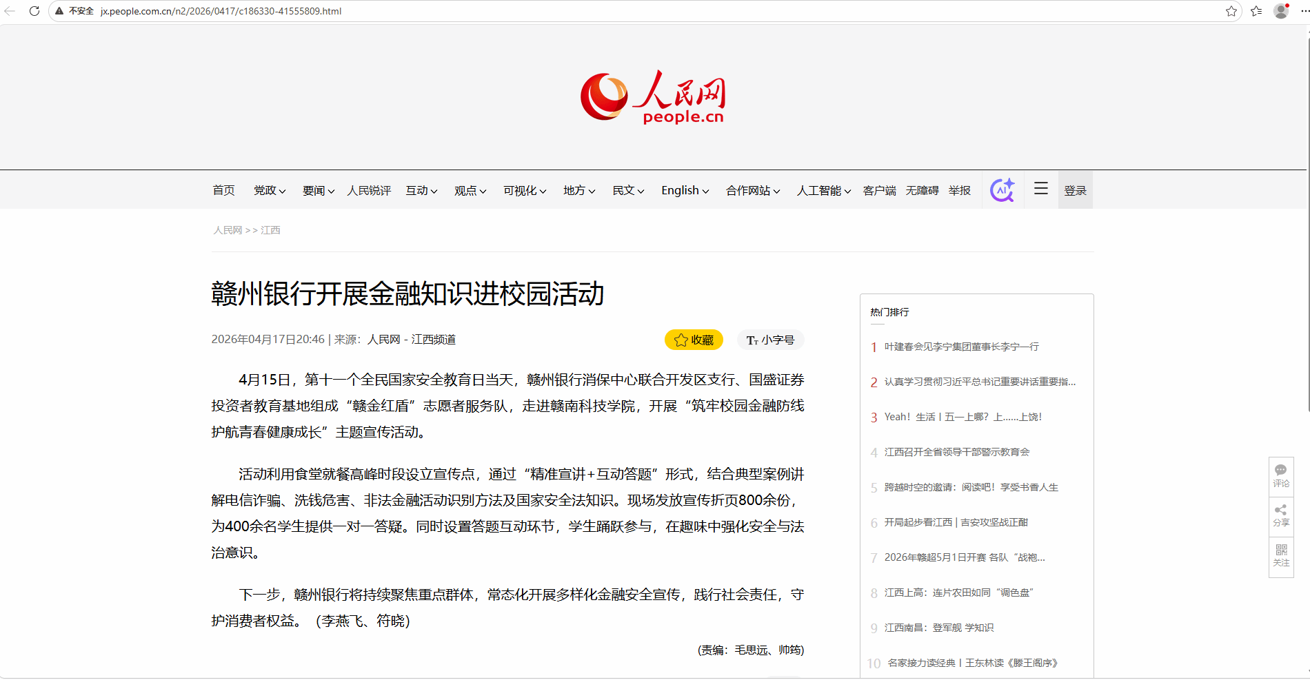 下一步,赣州银行将持续聚焦重点群体,常态化开展多样化金融安全宣传,践行社会责任,守护消费者权益。(李燕飞、符晓)