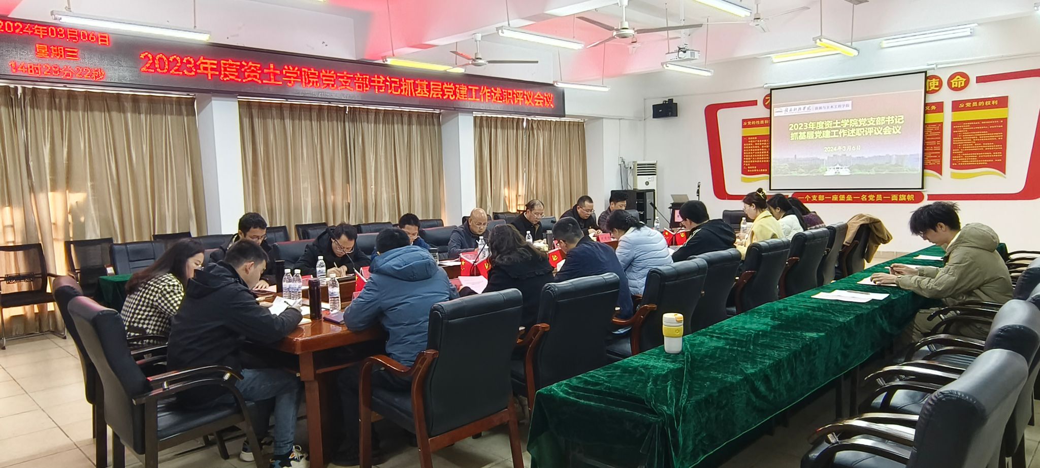 本网讯:为深入学习贯彻习近平新时代中国特色社会主义思想,提升基层党组织建设水平,3月6日下午,资源与土木工程学院在党员活动室Z713召开党支部书记抓基层党建工作述职评议会议。会议由资土学院党委书记刘俊峰书记主持,学校亚洲AV午夜成人片精品网站部部长蓝晓植、系领导班子出席,建设工程系党总支委员、各党支部书记及支委,党员和群众代表参加本次会议。