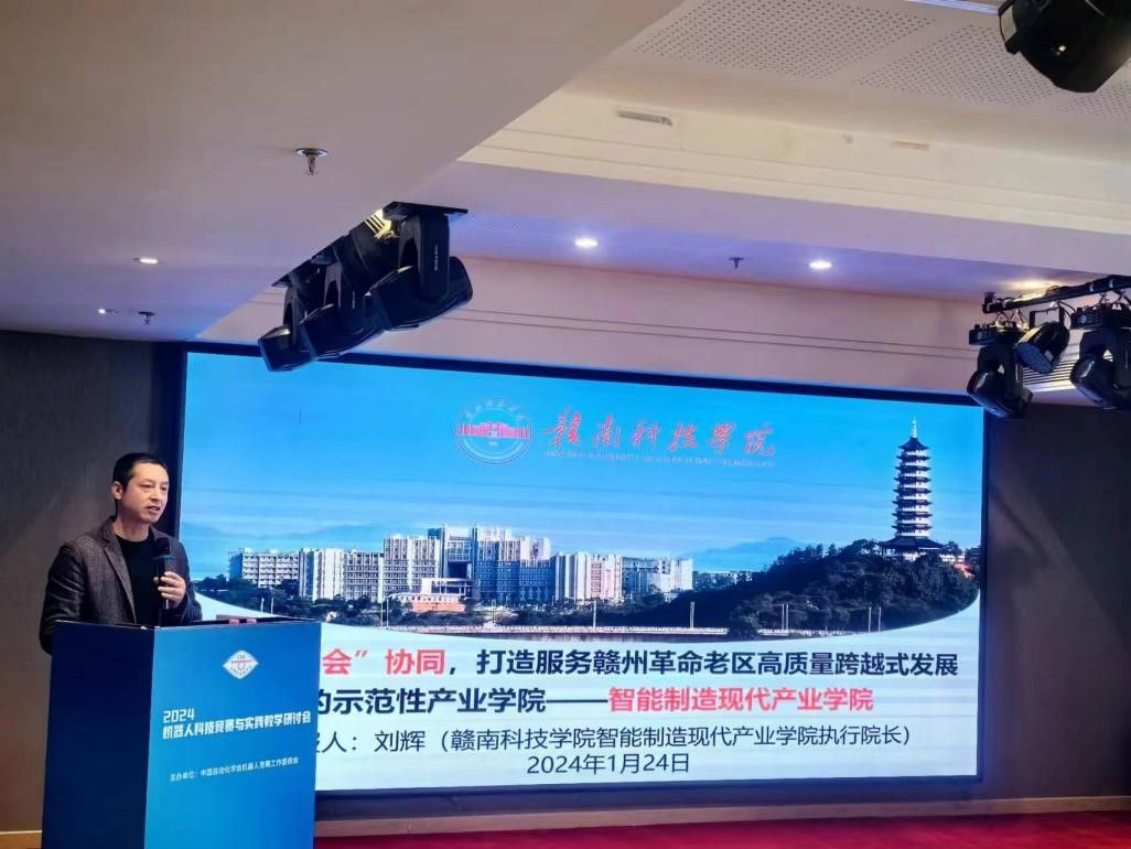 本网讯:1月24日,我校荣幸地受邀参加由中国自动化学会机器人竞赛工作委员会主办的2024机器人科技竞赛与实践教学研讨会。我校智能制造与材料工程学院刘辉代表发言,分享我校举办首届华南区域赛的宝贵经验与人才培养的特色举措,并进行深入的学术交流与研讨。