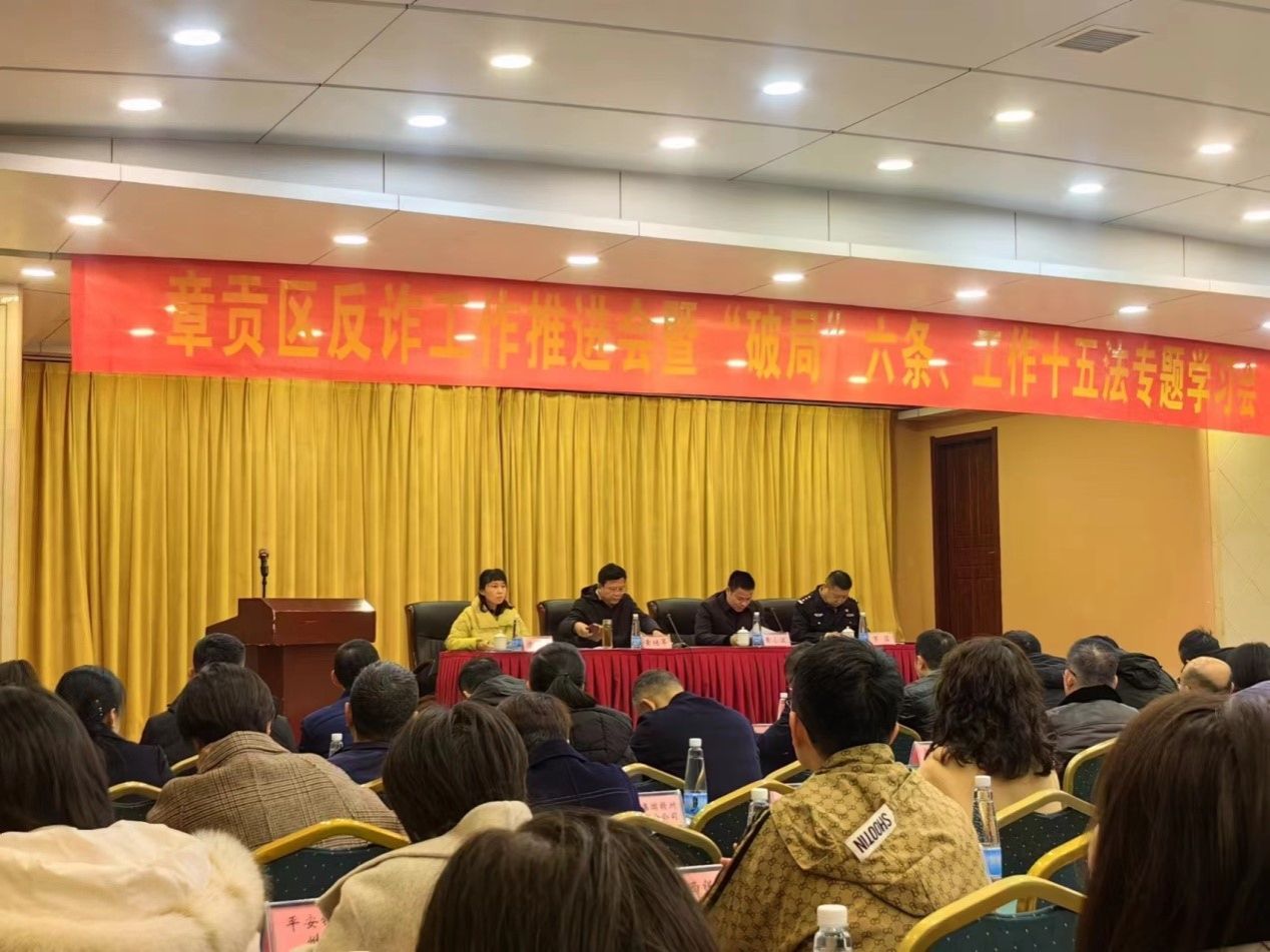 会上,市公安局章贡分局副局长罗菲通报"12.26"会议以来全区打击治理电信网络新型违法犯罪工作情况;区委政法委副书记陈双双传达学习反诈工作"破局六条""工作十五法"。中共赣州市章贡区委常委、章贡区委政法委书记黄继苹同志讲话,强调要充分认识形势、锚定目标,切实扛起政治责任;全力开展任务攻坚、强化举措、打防并举;加强宣传、落实落细。