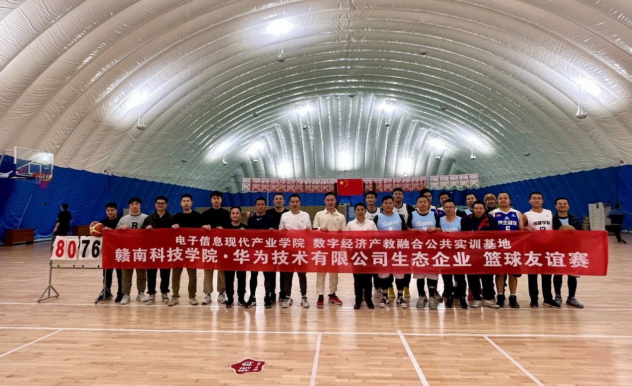 本网讯:为进一步深化我校与华为技术有限公司的师资交流,更好地服务于电子信息现代产业学院和数字经济产教融合公共实训基地的建设,增进我校与华为技术有限公司及生态企业的沟通交流,1月23日下午,我校教职工篮球队与华为技术有限公司生态企业篮球队进行一场友谊赛。我校党委委员、副校长何锦龙和华为江西政企赣州业务部总经理李宏业分别担任双方领队,并作为队员参与比赛。