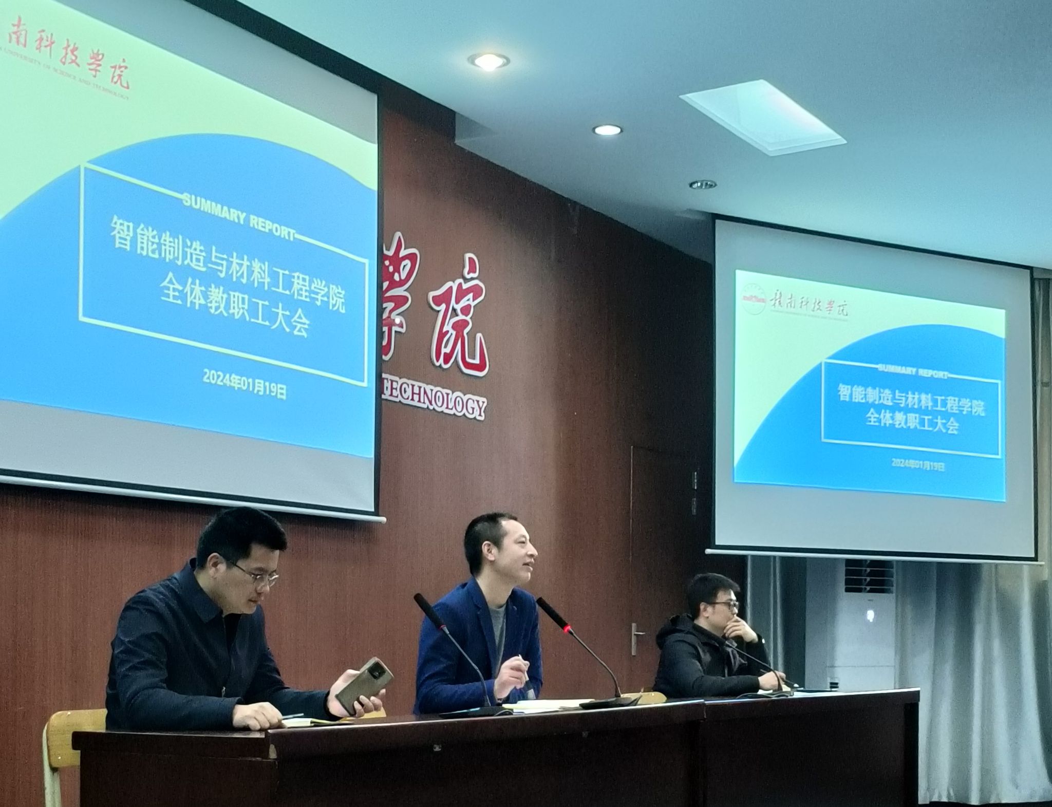本网讯:1月19日下午,智能制造与材料工程学院在MBA学术报告厅召开2023年工作总结与2024年工作谋划会。学院领导班子及全体教职工参加此次会议。会议由刘辉主持。