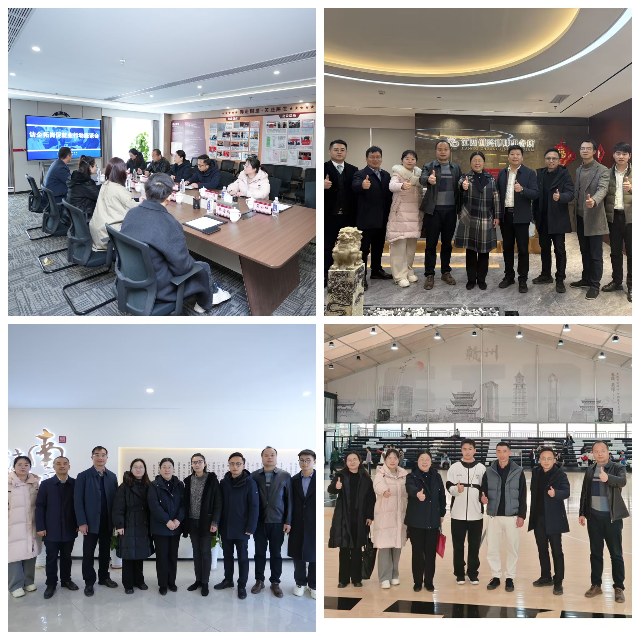 本网讯:2月2日至3日,文法学院赴江西南芳律师事务所、江西得万体育产业管理有限公司、江西创兴律师事务所开展访企拓岗行动,精准对接律所和企业人才需求、拓宽毕业生就业渠道并推动人才培养改革。文法学院副院长高健婕、李敏,学工办主任王军堂以及法学教研室教师参加此次活动。