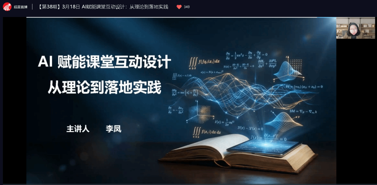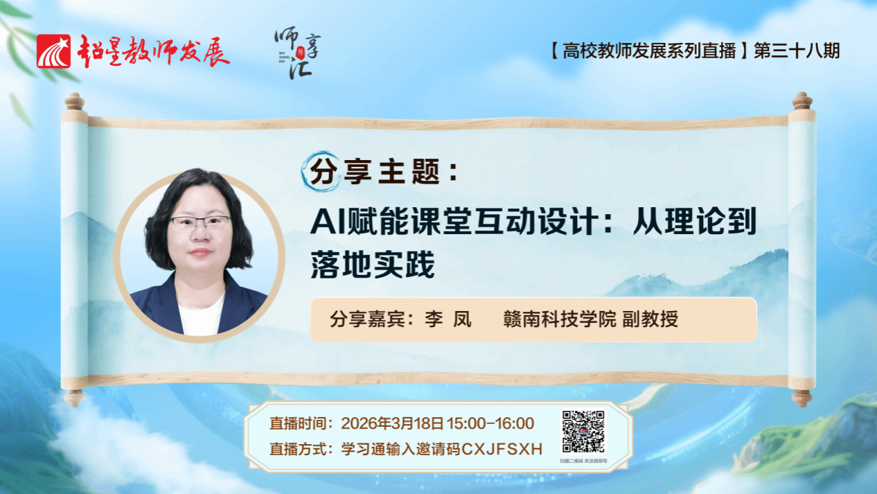 本网讯: 3月18日下午,由超星教师发展中心主办的“师享汇”系列线上公益讲座如期开播。我校信息工程学院副教授李凤受邀作题为《AI 赋能课堂互动设计:从理论到落地实践》的专题直播分享。本次讲座吸引了来自全国近5000名高校教师云端观摩,为广大高校教师带来了一场理论与实践并重的学术盛宴,充分展示了我校教师在教育数字化转型背景下的前瞻性探索与教学风采,极大提升了亚洲欧美日韩中文字幕在线在全国高校教研领域的知名度与影响力。