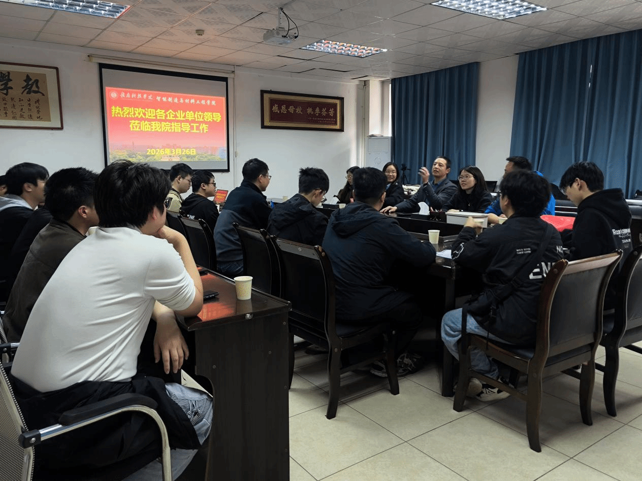本网讯:3月26日下午,智能制造与材料工程学院“匠心智造”专场就业宣讲会在工程楼416会议室举行。本次宣讲会邀请了江西刀父科技有限公司、东莞市宏鹏传动科技有限公司、浙江丰立智能科技股份有限公司三家企业走进校园,与在校学子面对面交流,搭建高质量就业的对接平台。智能制造与材料工程学院副院长刘辉、“照耀齿轮班”班主任曾称福及相关特色班毕业生共同参加。