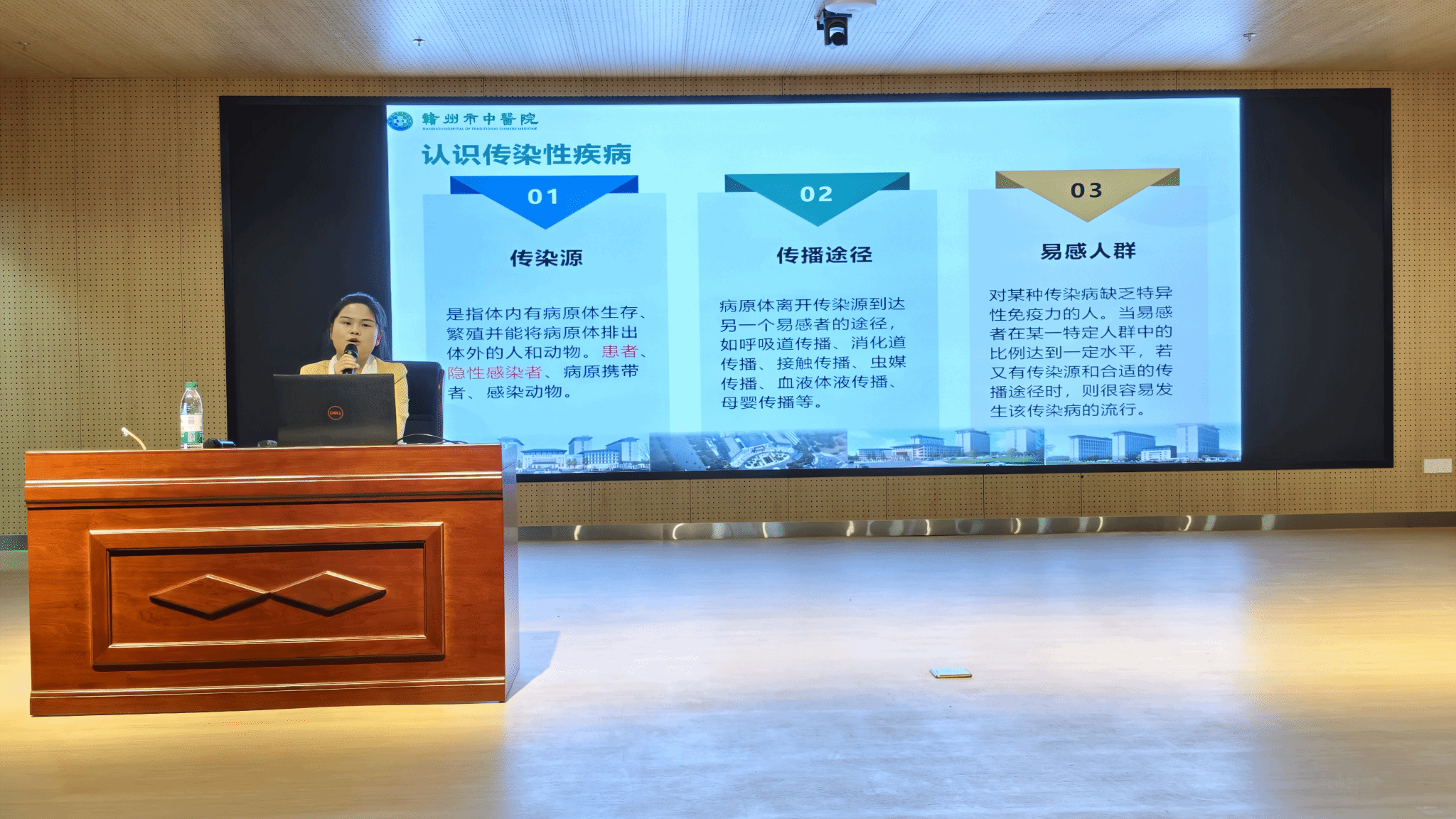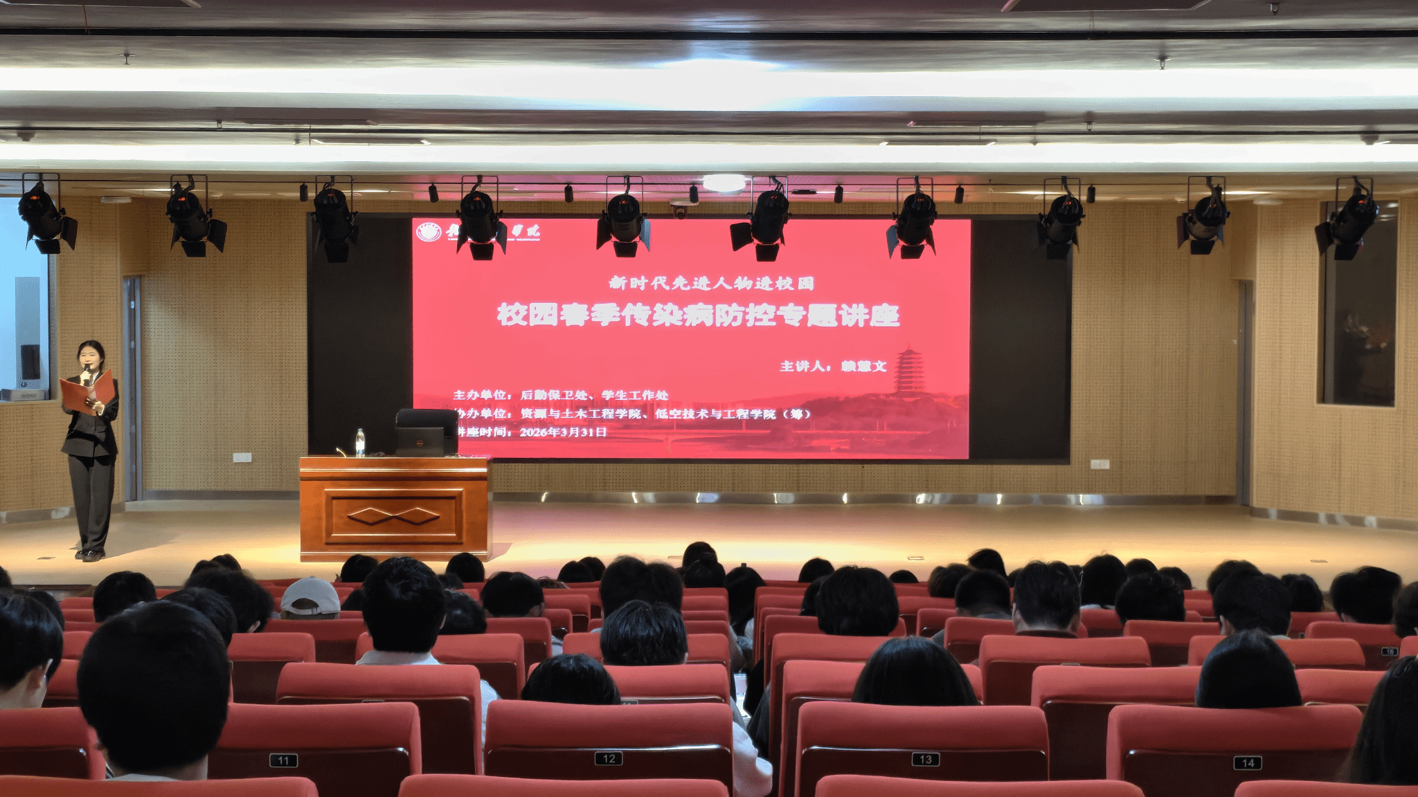 本网讯:3月31日晚,我校特邀2023年度、2025年度赣州市优秀感控工作者、赣州市中医院感染防控与传染病监测专家赖慧文,在大学生活动中心报告厅开展“新时代先进人物进校园:校园春季传染病防控”专题讲座。资源与土木工程学院党委委员、学工办主任涂黎明,后勤保卫处教师代表、辅导员、各学院班长及生活委员、资源与土木工程学院团委学生干部共计300余名师生聆听。此次讲座由后勤保卫处、学生工作处联合主办,资源与土木工程学院承办。