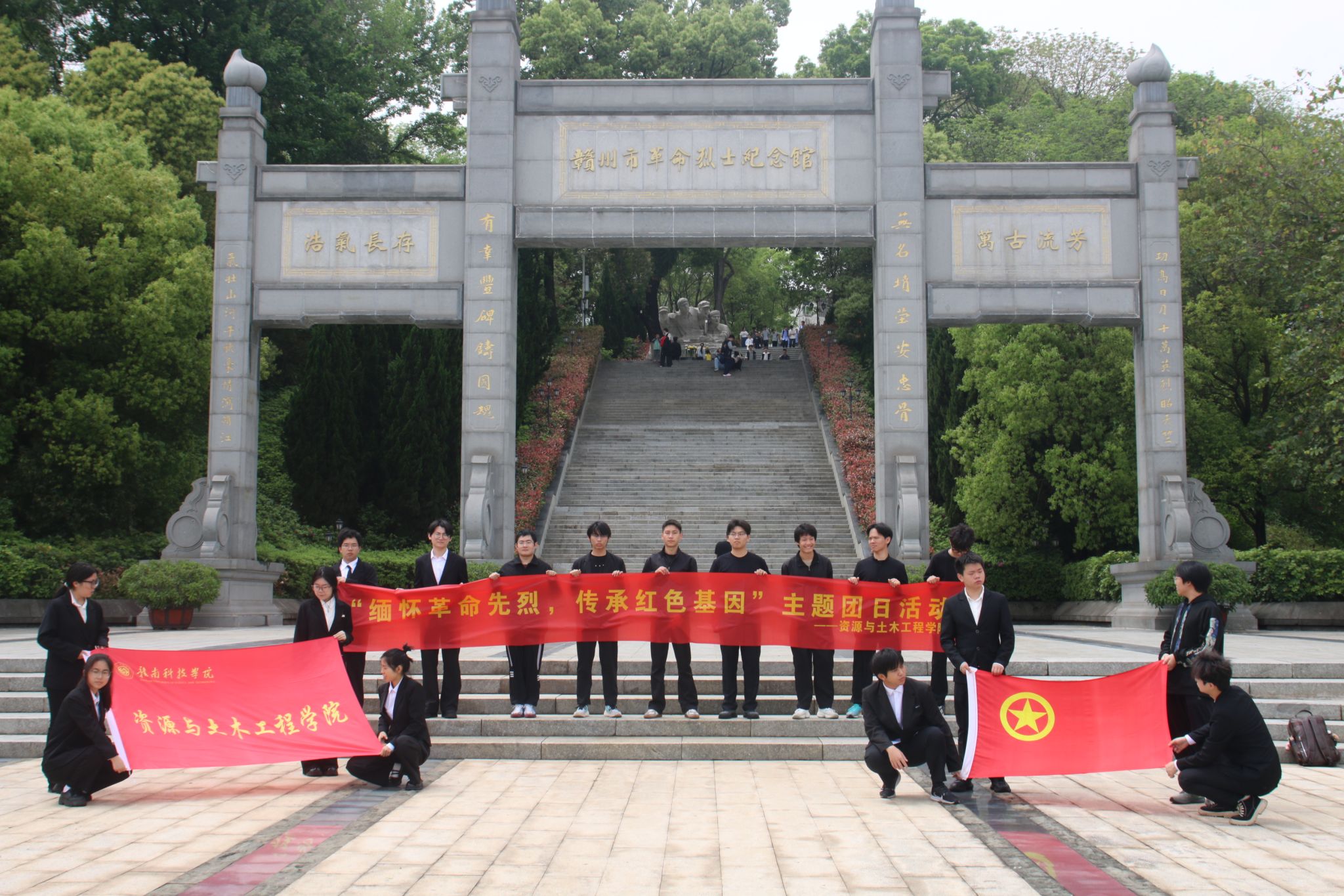 4月4日上午,校团委组织第十五期青马班全体学员及团学骨干,开展“清明追英魂,青春砺初心”主题团日活动。师生代表在烈士纪念碑前肃立,齐唱国歌。青马班学员代表黄家豪发言,号召同学们以英烈为精神灯塔,将缅怀之情转化为勤学奋进、担当奉献的实际行动。在团旗引领下,师生代表重温入团誓词,铮铮誓言响彻陵园。随后,校国旗护卫队正步护送花圈至纪念碑前,全体学员依次缓步绕行纪念碑,献上手中鲜花,深深鞠躬致意。仪式尾声,师生共同瞻仰烈士墓区与英烈墙,并走进革命烈士纪念堂,参观红军攻赣战役历史陈列与赣南苏区革命斗争专题展览,透过珍贵文物与史料重温峥嵘岁月。