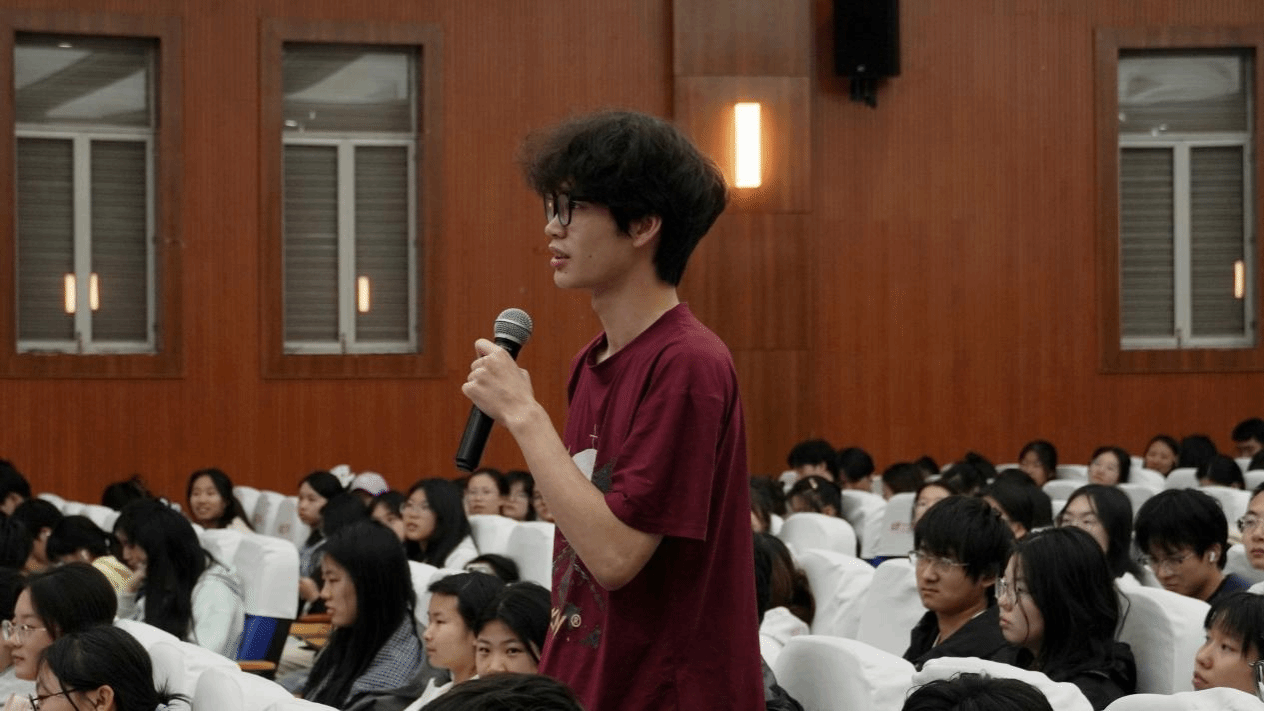 互动交流环节,同学们踊跃提问,围绕科技前沿与青年担当等话题与老师深入探讨。 陈浩华结合自身经历与行业前沿动态,对大家的问题逐一耐心回应,帮助同学们理解科技革命与青年担当的关系,勉励大家以敢闯敢试的劲头投身创新实践,在时代浪潮中找准定位、奋勇争先,用青春力量书写科技报国的新篇章。